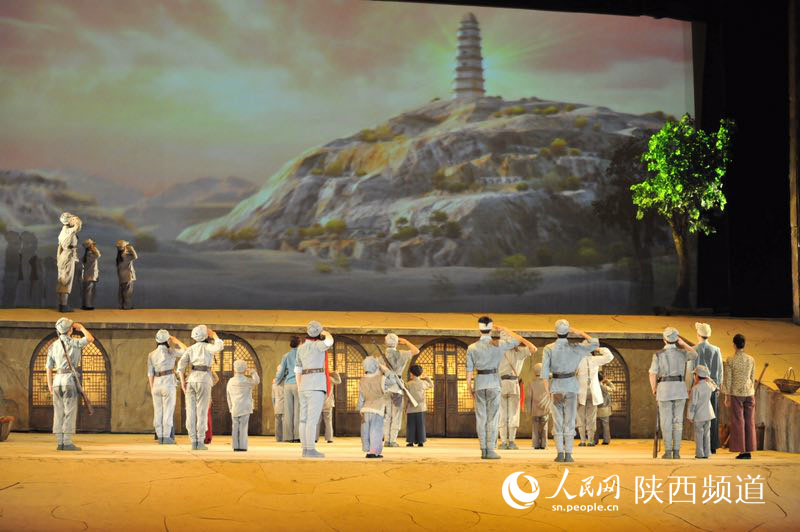 6月26日上午11點半,延安圣地大劇院里座無虛席。觀眾大多慕名而來,欣賞這臺中國首部大型紅色歷史舞臺劇《延安保育院》。2011年7月1日,《延安保育院》在圣地大劇院首演,演繹了抗日戰爭時期,前線將士、烈士遺孤等革命后代在保育院健康快樂地成長,隨部隊轉戰陜北以及東渡黃河,走向新中國的歷程。演員們的完美表演,音樂與場景的多重變化,自然而然地將觀眾帶回到那段烽火歲月中。