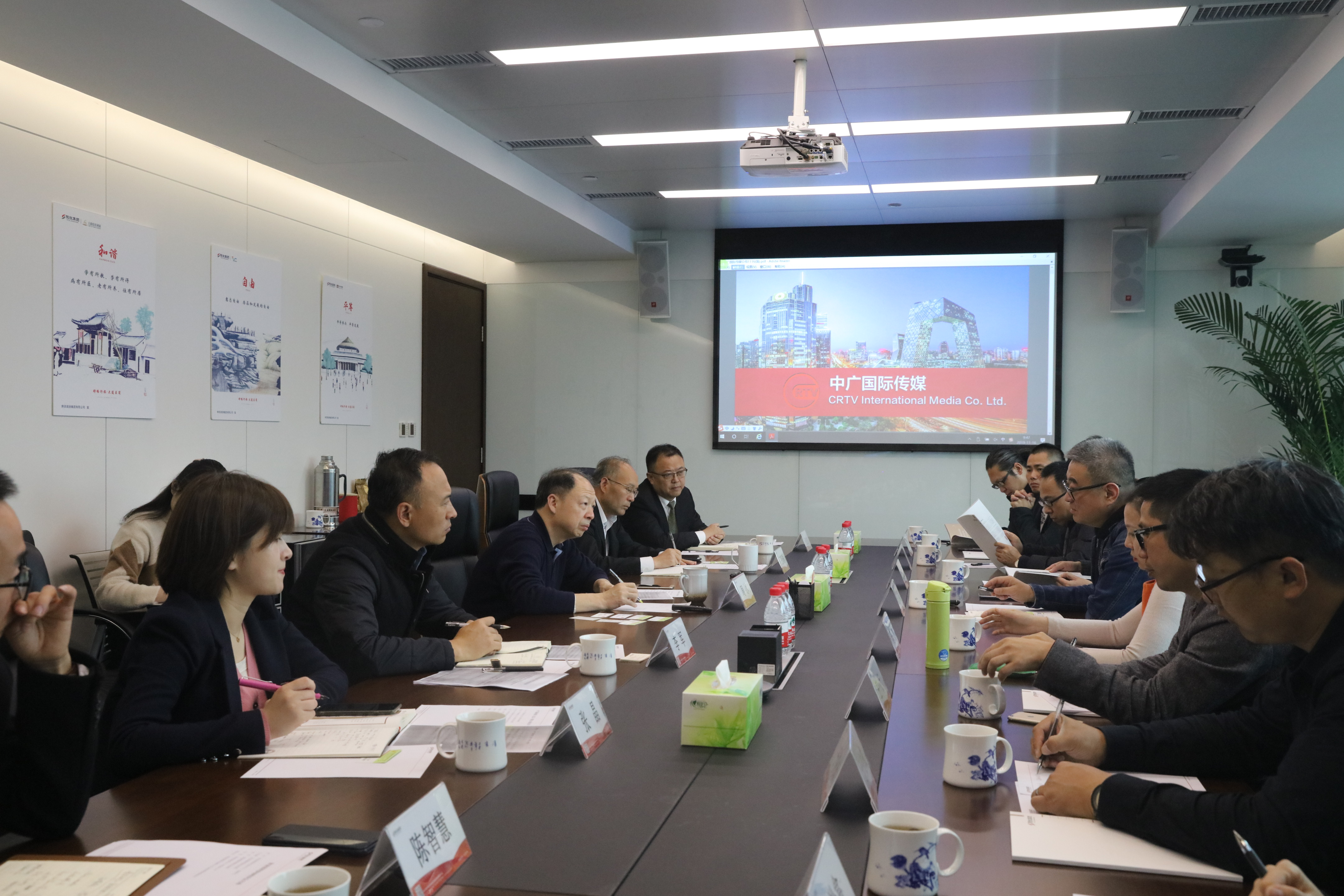 王斌董事長對陜旅集團的熱情接待表示感謝,并就中廣國際相關(guān)情況作簡要介紹,指出陜旅集團是陜西省文化旅游融合發(fā)展的龍頭企業(yè),在文化產(chǎn)業(yè)數(shù)字化、網(wǎng)絡(luò)化、智能化的建設(shè)方面也做出了有益探索,本次來訪希望能夠在國家鄉(xiāng)村振興戰(zhàn)略的時代背景下,雙方積極尋找合作空間,共同促進陜西旅游景區(qū)的智慧化建設(shè),助力打造具有陜西特色的現(xiàn)代產(chǎn)業(yè)集群。
