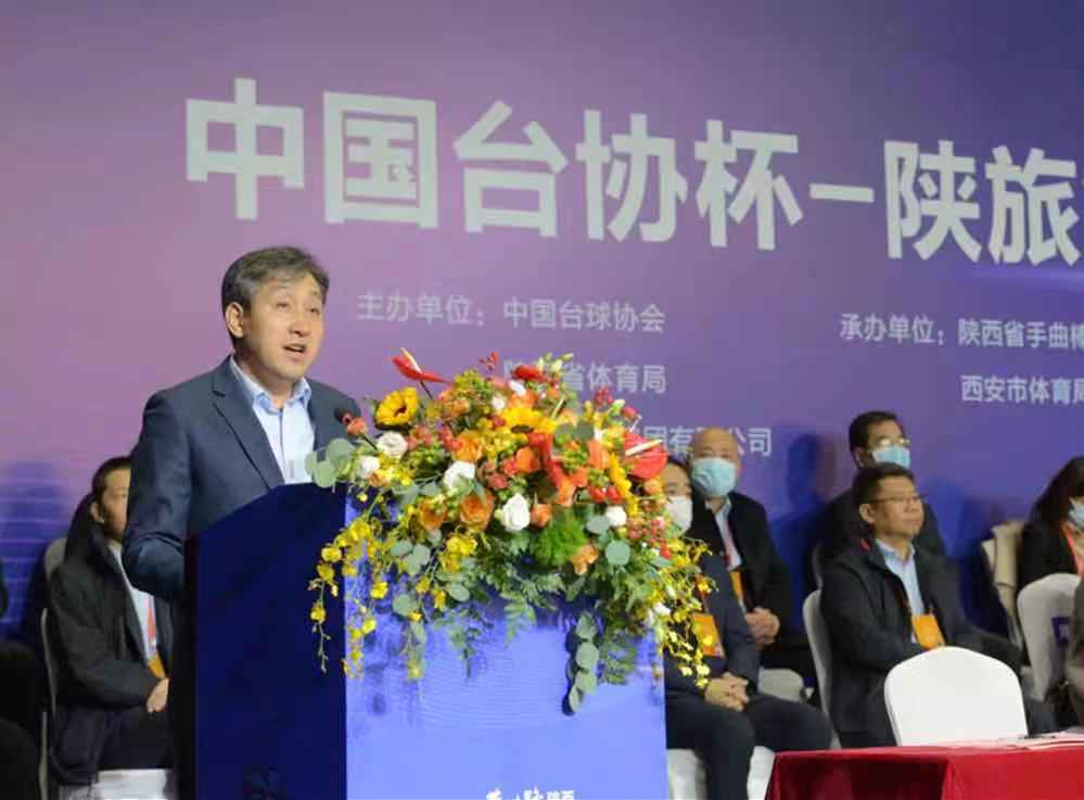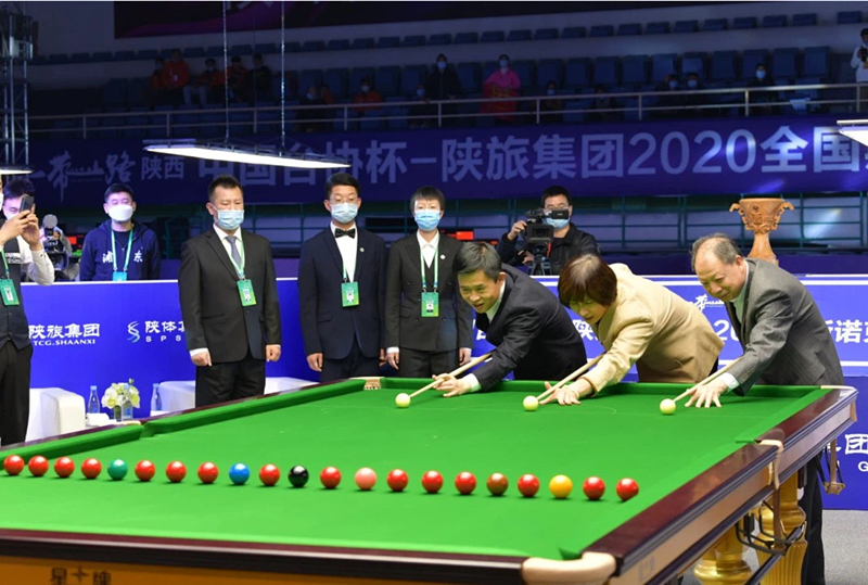 11月21日, “一帶一路”陜西中國(guó)臺(tái)協(xié)杯-陜旅集團(tuán)2020全國(guó)斯諾克團(tuán)體錦標(biāo)賽在陜西網(wǎng)球中心正式開(kāi)幕。國(guó)家體育總局手曲棒壘球運(yùn)動(dòng)管理中心主任、中國(guó)臺(tái)球協(xié)會(huì)主席王濤出席并宣布開(kāi)幕,陜西省體育局黨組書(shū)記、局長(zhǎng),十四運(yùn)組委會(huì)副秘書(shū)長(zhǎng)王勇,陜旅集團(tuán)黨委書(shū)記、董事長(zhǎng)周冰,陜西省體育局黨組成員、副局長(zhǎng)張王平,中國(guó)臺(tái)球協(xié)會(huì)秘書(shū)長(zhǎng)劉春勝等領(lǐng)導(dǎo)嘉賓出席開(kāi)幕式。開(kāi)幕式由陜旅集團(tuán)副總經(jīng)理、陜體集團(tuán)黨委書(shū)記/執(zhí)行董事吳斌主持。