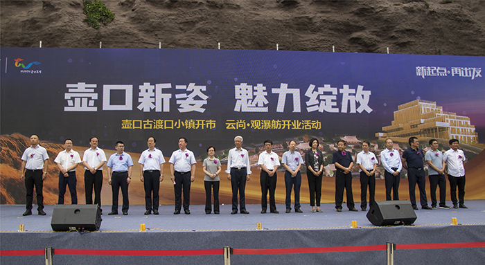 壺口新姿,魅力綻放。7月8日上午,壺口古渡口小鎮開市暨云尚·觀瀑舫開業活動在陜西黃河壺口景區隆重舉行。陜西省旅發委副主任孟祥國,延安市委常委、副市長孫礦玲,陜旅集團黨委書記、董事長周冰,陜旅集團總經理任公正,宜川縣委書記左懷理,宜川縣委副書記、縣長任建新等領導嘉賓,以及陜旅集團領導班子成員、各部門負責人、相關公司負責人,全國各地媒體和旅行社代表共計500余人出席活動。