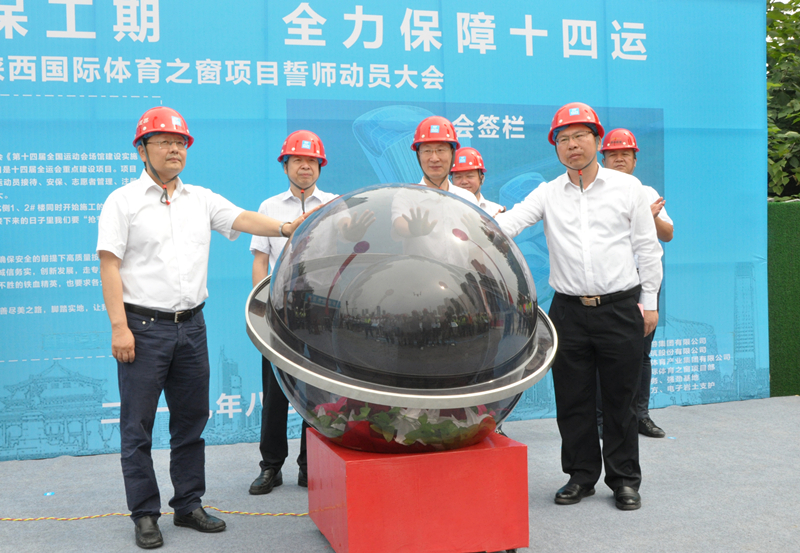 8月1日上午,在陜西國際體育之窗項目現場召開“鎖定節點保工期,全力保障十四運”誓師動員大會,陜西旅游集團有限公司黨委書記、董事長周冰,中國建筑西北區域總部(中建絲路建設投資集團)黨工委副書記、總經理孔衛湘,陜西旅游集團有限公司副總經理、陜西體育產業集團有限公司黨委書記、執行董事吳斌及各參建單位出席了本次動員大會,大會由陜西體育產業集團有限公司總經理高勤銀主持。