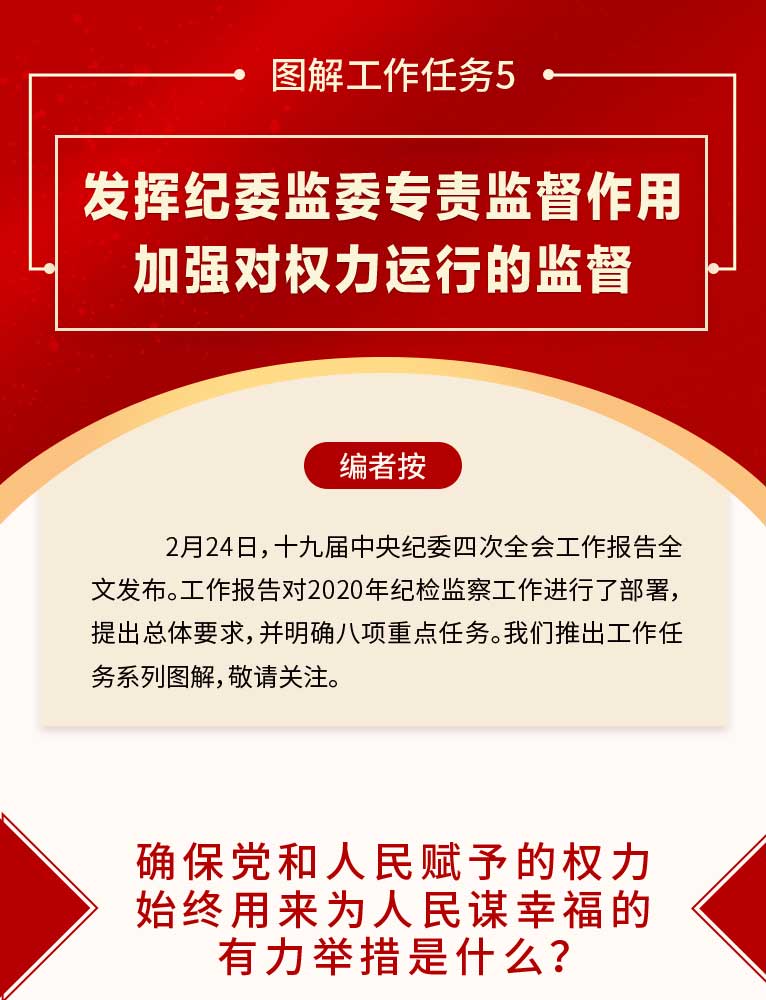 圖解工作任務5丨發揮紀委監委專責監督作用 加強對權力運行的監督